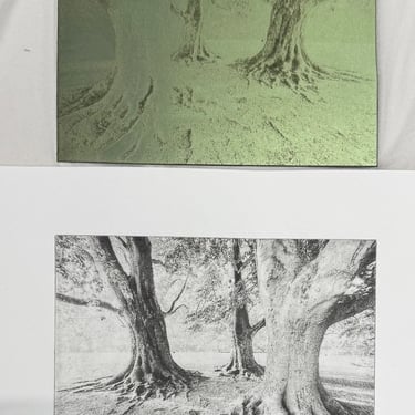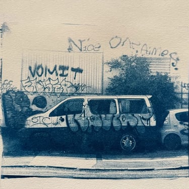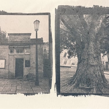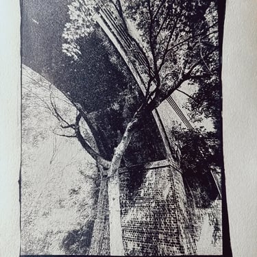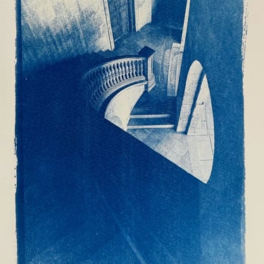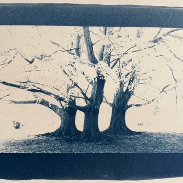 Alternative photographic processes are ways of capturing that that go beyond the usual methods like digital printing and calotype (35mm film). These alternative techniques emerged in the 19th century. I began experimenting with cyanotype, which is perhaps the simplest method. You mix two chemicals in equal parts to create a light-sensitive emulsion. This emulsion is then applied to paper, fabric, or glass and exposed to light in a contact frame behind a negative transparency. When the cyanotype emulsion is exposed to light, it develops and after washing turns Prussian blue. Other alternative photographic processes I’ve used include Anthotype (turmeric and alcohol emulsion developed with warm water and baking soda) and platinum/palladium printing, a more involved method which produces stunning archive-quality black and white prints. You will find more examples of prints made using alternative photographic processes in my Found gallery.